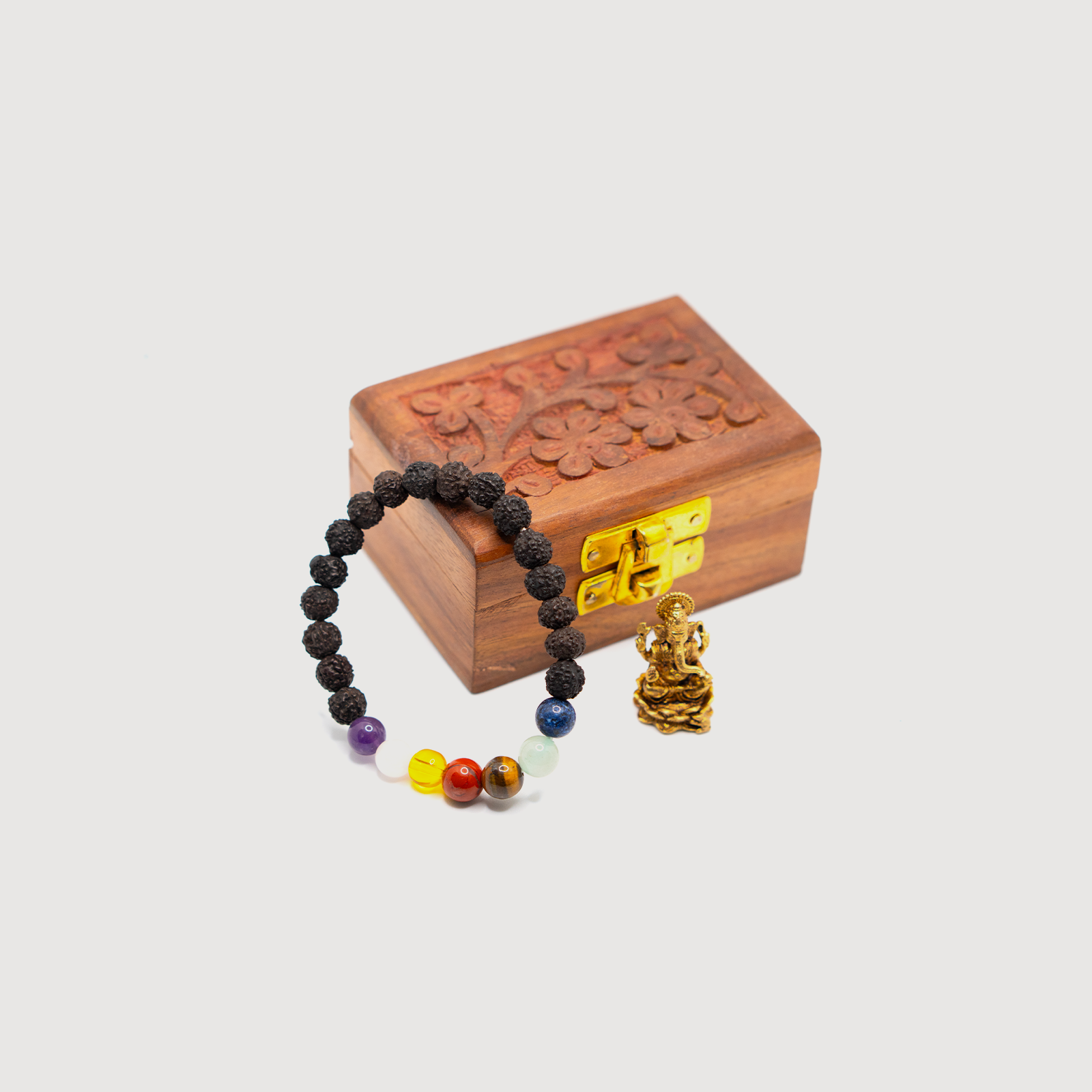 This 7 Chakra Bracelet features a combination of coloured beads traditionally associated with the seven chakras, thoughtfully assembled for daily spiritual and lifestyle wear. Each bead is carefully selected and quality-checked to ensure uniform finish, durability, and comfort suitable for regular use. The balanced design makes the bracelet easy to wear during daily routines, meditation, yoga, or casual use. Its versatile appearance also makes it ideal for personal use and thoughtful gifting during spiritual or personal occasions. Suitable for regular spiritual or lifestyle use when handled and stored with basic care. No exaggerated spiritual or medical claims are made.